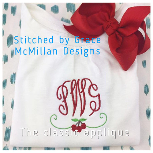 This file includes a fill embroidery cherry with vintage stitch and satin fill details to create the perfect frame for a monogram, name, or single initial. It can also be used by itself. *Fonts not included The design comes in a 3 inch, 4 inch, and 5 inch length size.
