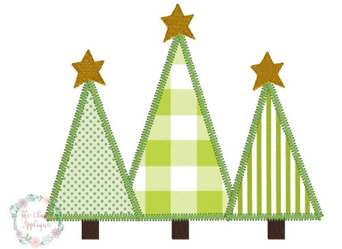 This file includes a zig zag finish Christmas tree trio applique. This applique comes in three different sizes: