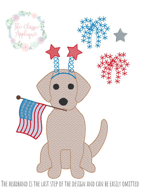 This file includes a patriotic dog sketch fill embroidery design. This trio comes in four different sizes: