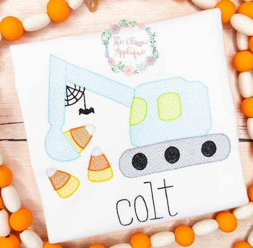 This file includes a Halloween excavator scooping candy corn sketch fill embroidery design. This design comes in three different sizes: