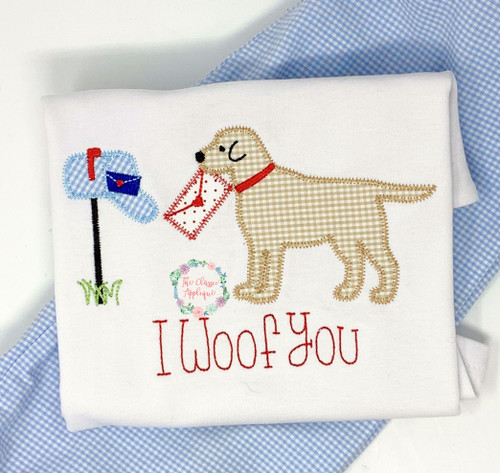 This file includes a lab dog delivering a valentine zig zag applique. This applique comes in four different sizes: