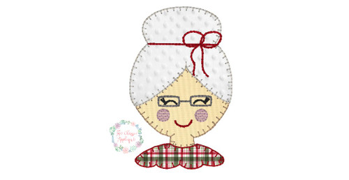 This file includes a blanket stitch finish Mrs. Claus applique. This applique comes in three different sizes: