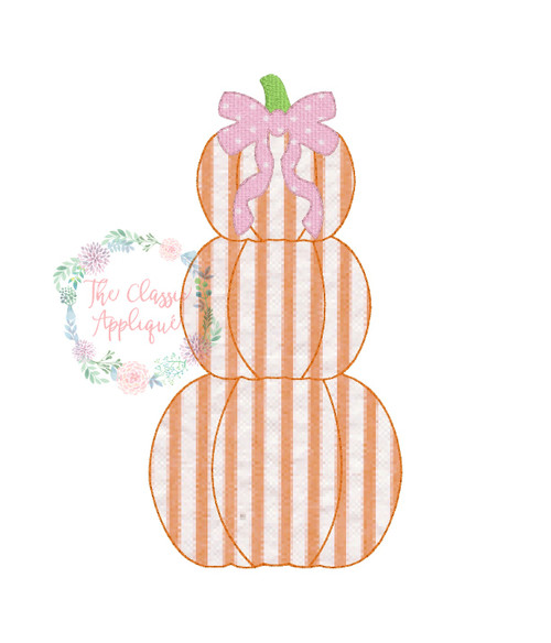 This file includes a pumpkin stack with bow vintage applique machine embroidery design. This design comes in four different sizes: