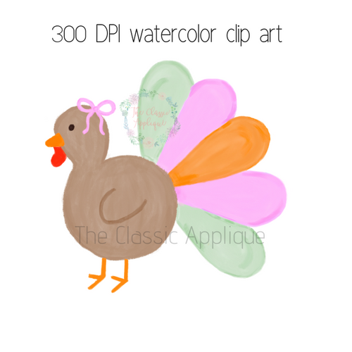 1 single turkey with bow watercolor without the watermark PNG file of 300 DPI with transparent background