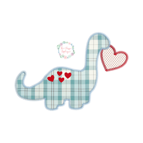 This file includes a dino with heart zig zag applique. This design comes in three different sizes: